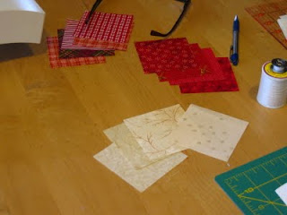 Today I began the Snowball quilt for the quilt challenge. My dear friend Chris and I are both participating in the challenge, so we thought we would take the day for starting our quilts. Even though we weren't quite as productive as we would have liked to be, it was still a great day of figuring out the pattern, cutting, and creating our first blocks. I finally decided on my color: GREEN. Anyone who has known me for any length of time knows that green is my favorite color. Over the years I have acquired a lot of green fabric, so it was only natural that I choose to use all the green from my stash in this quilt. Chris decided to use red, which I think will be stunning.